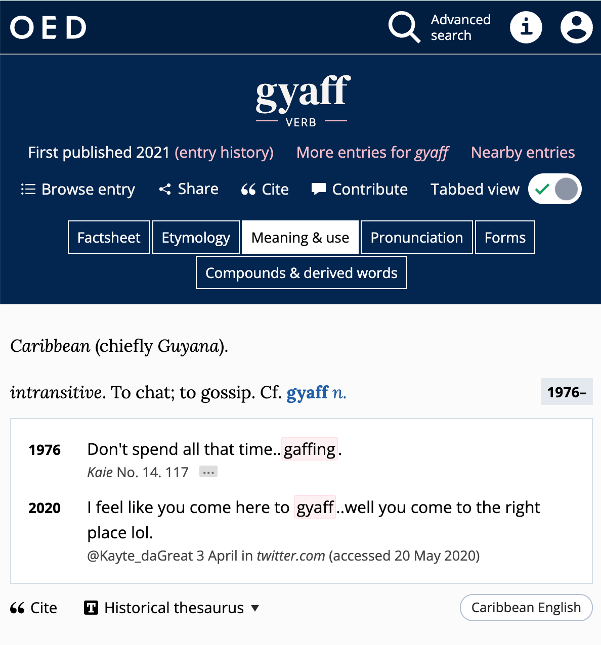 I encountered this word in a novel1 set in the Caribbean country of Guyana. I first thought it was a distortion of the word ‘gaffe’, which means something stupid or embarrassing said in public. The way ‘pace like fire’ becomes ‘pyace like faya’. But it isn’t true. Gyaff is not gaffe said in the Caribbean accent. It has an independent existence. Every time I read this word in the novel, I kept falling in love with it. Not because I am a weirdo who fantasises about words but because every time this word was mentioned in a scene, I wanted to be there, well, gyaffing. Take these for example -